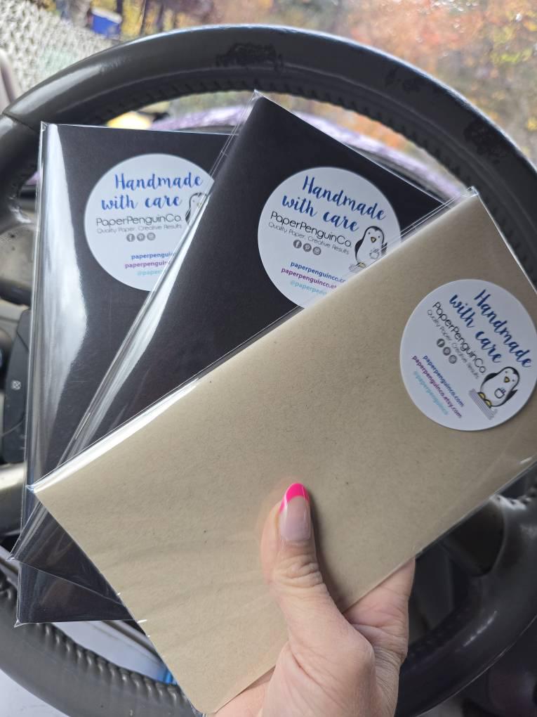 If you are purchasing a notebook with Tomoe River, Strathmore, Shiraoi, Onion Skin or any other custom papers and would like an alternative cover added to the notebook instead of the kraft brown or black options, please order the specialty paper notebook and leave a note at checkout which cover you would like me to use from the shop. Please note not all covers are available in the largest size (Extra Wide / A5) when placing your cover request.