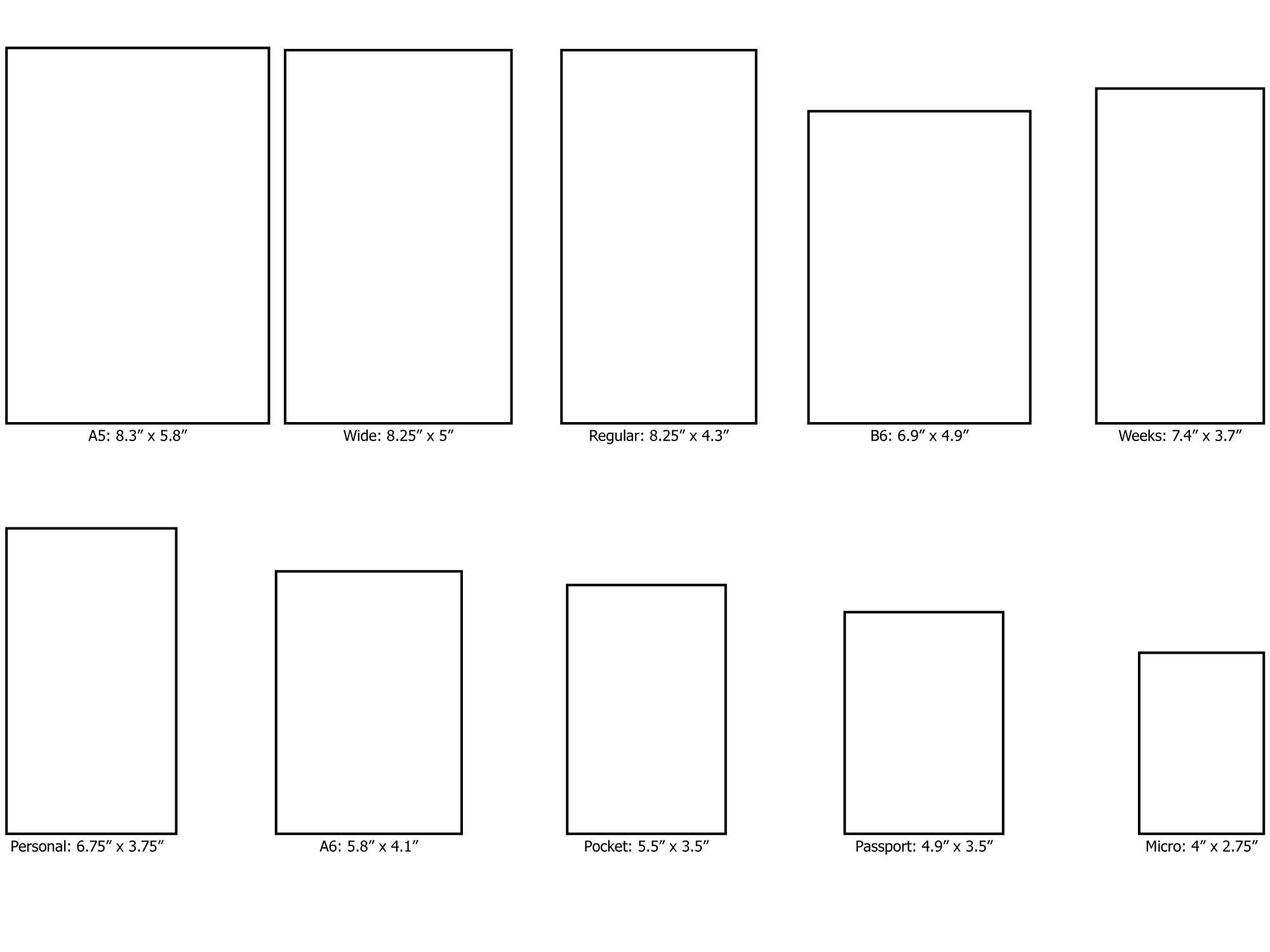 - Pocket / Field Notes (5.5 inches tall x 3.5 inches wide)