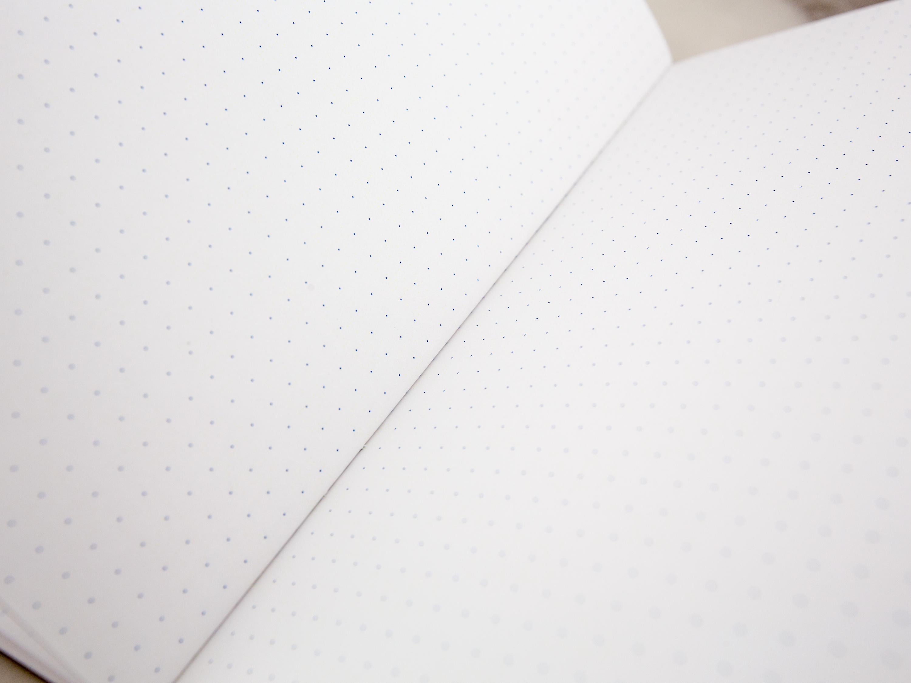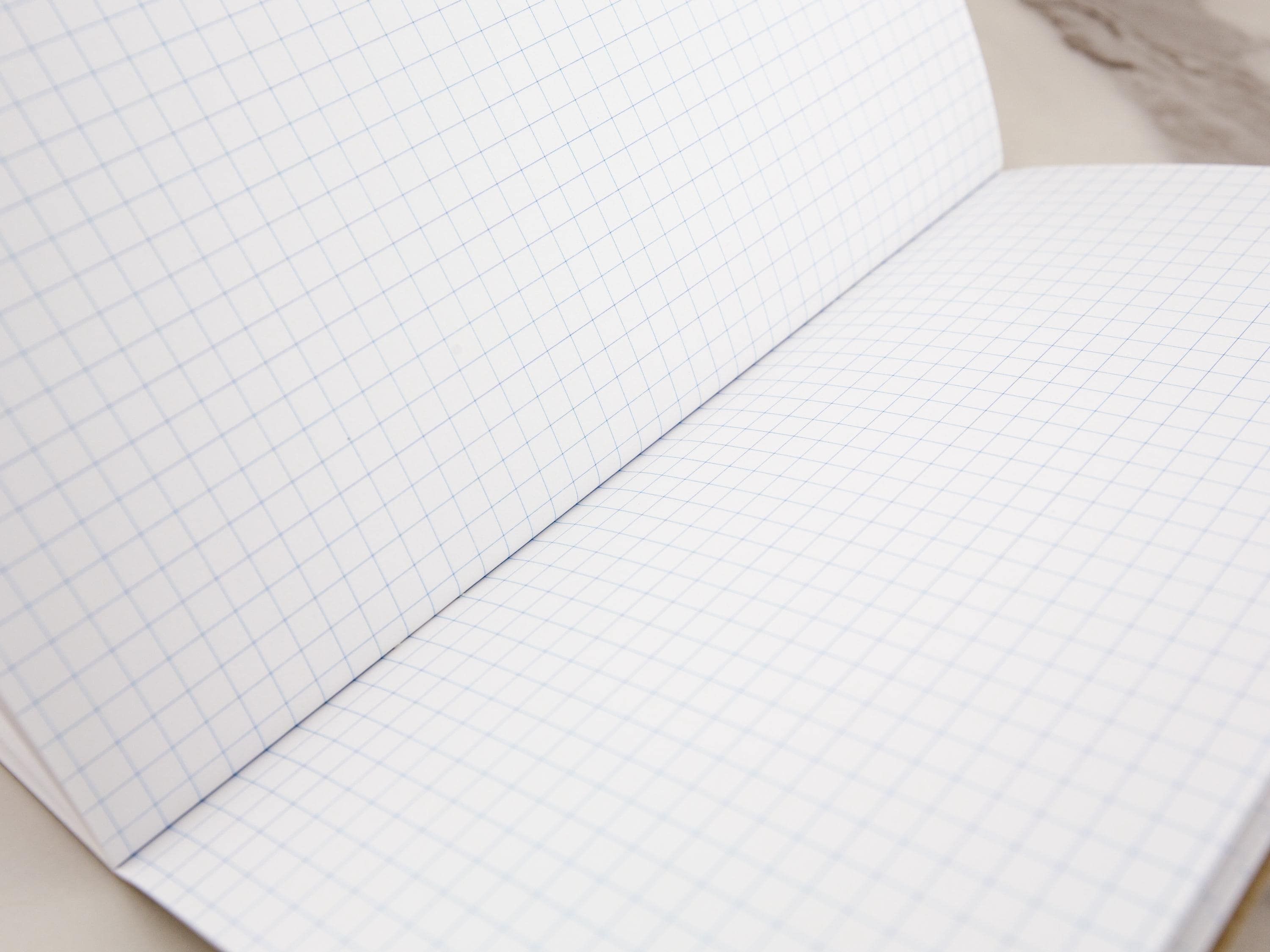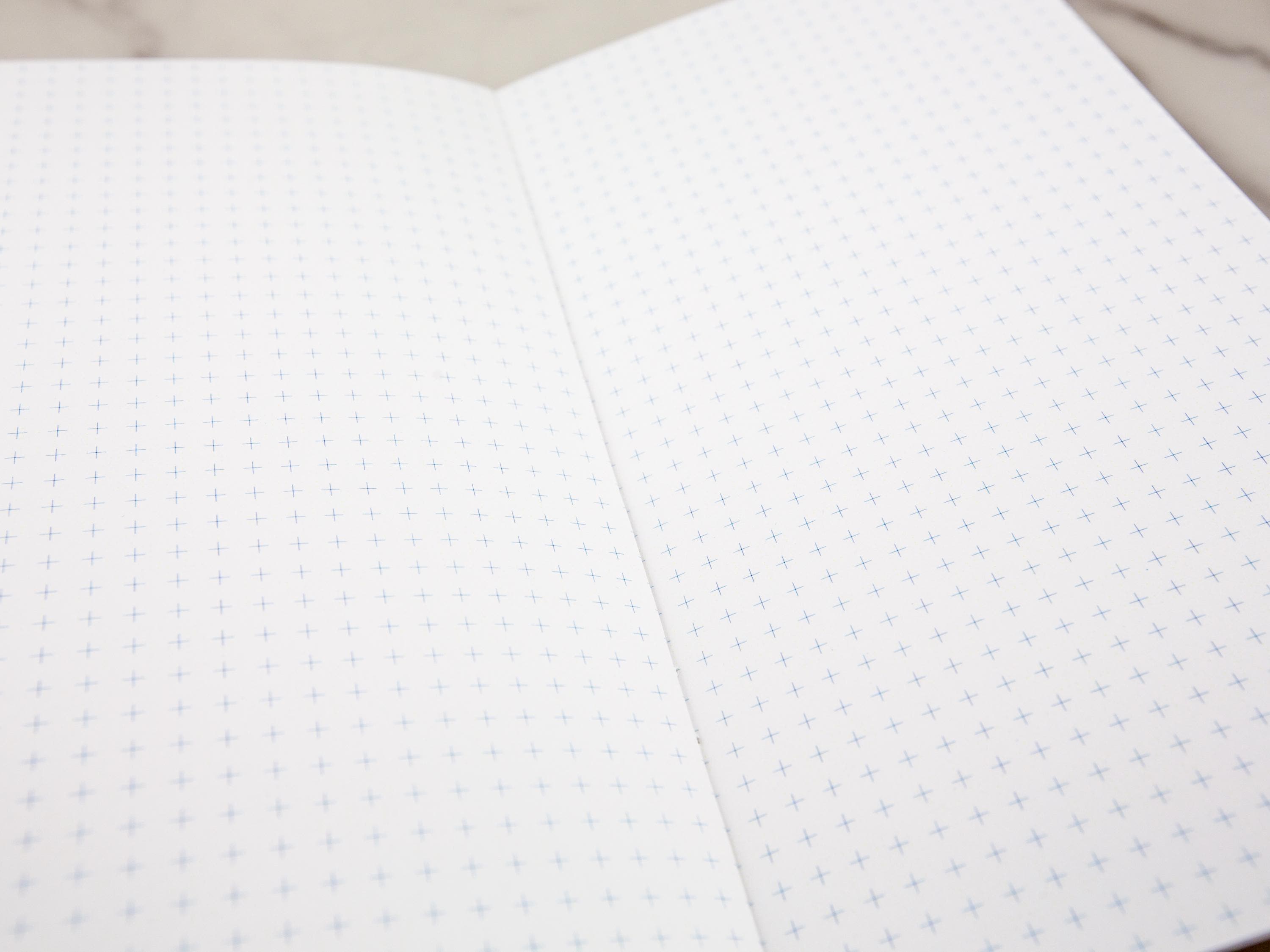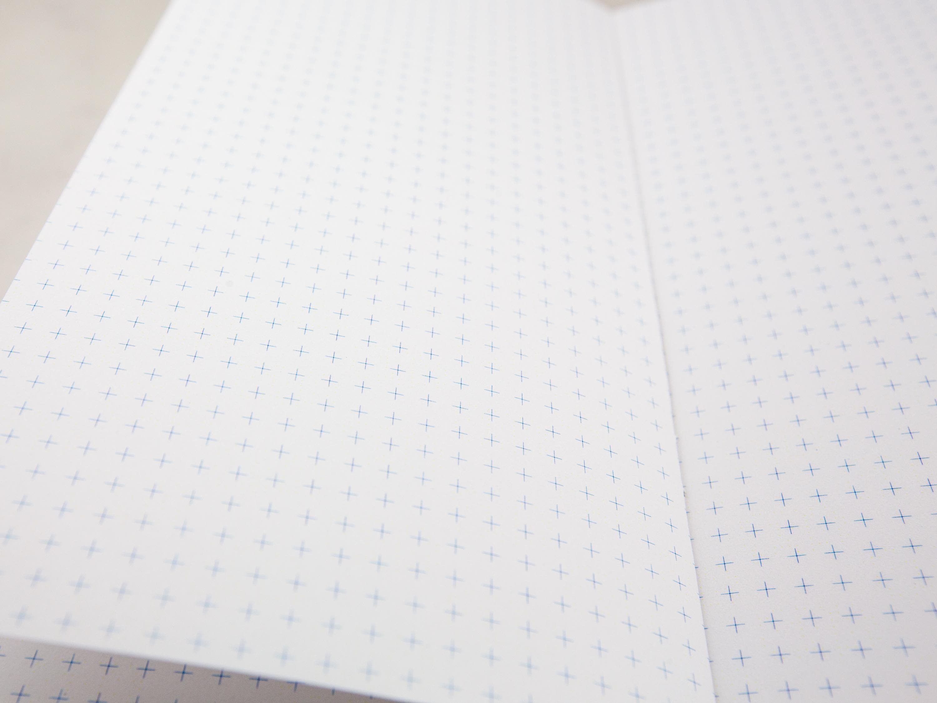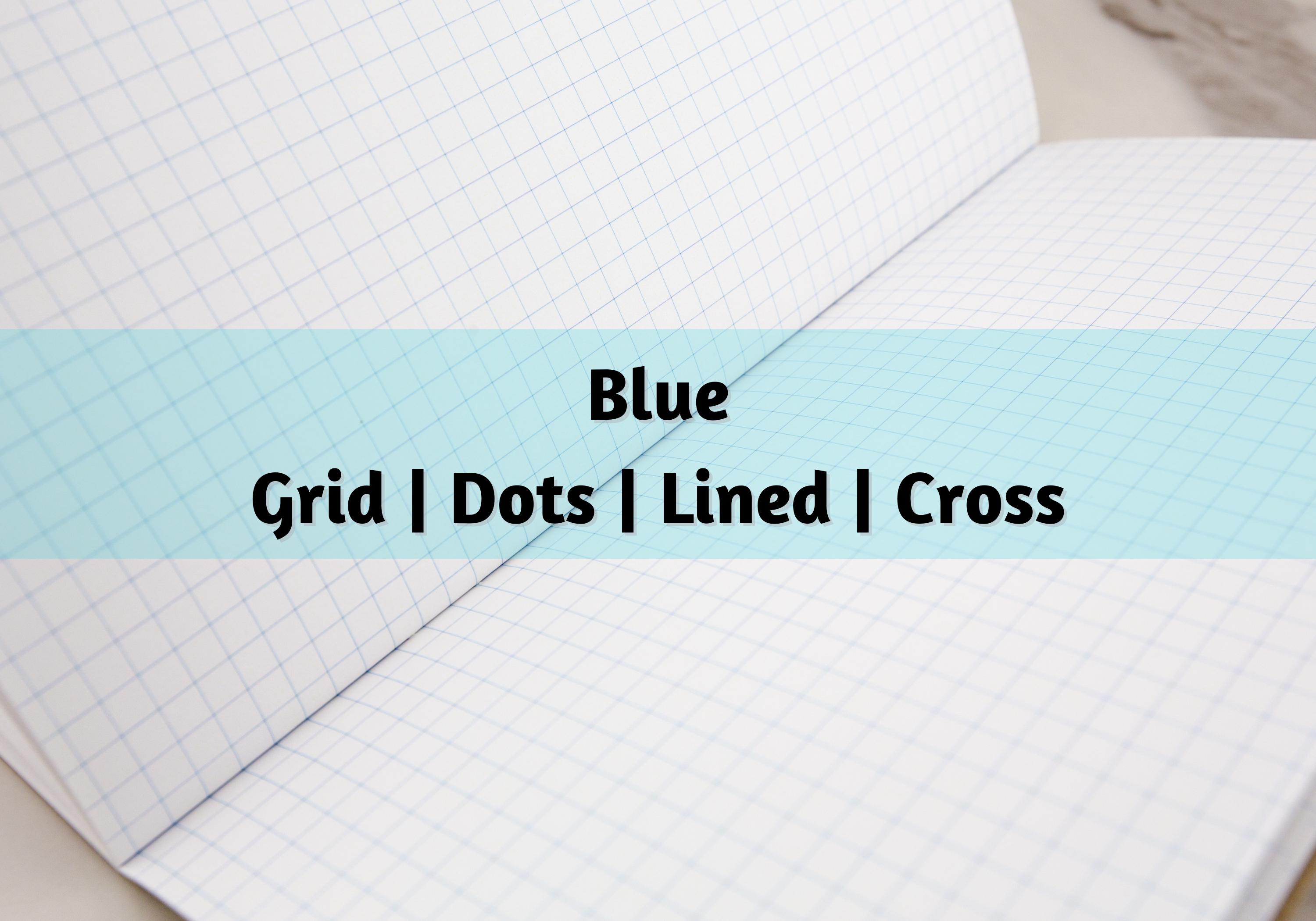 The blue grid / dots / lined / cross notebook provides a simple, traditional cover with 40 pages of quality writing paper. The paper is bleed-resistant, feather-resistant, and fountain pen friendly. It fits perfectly in all sizes of traveler's Notebook inserts.