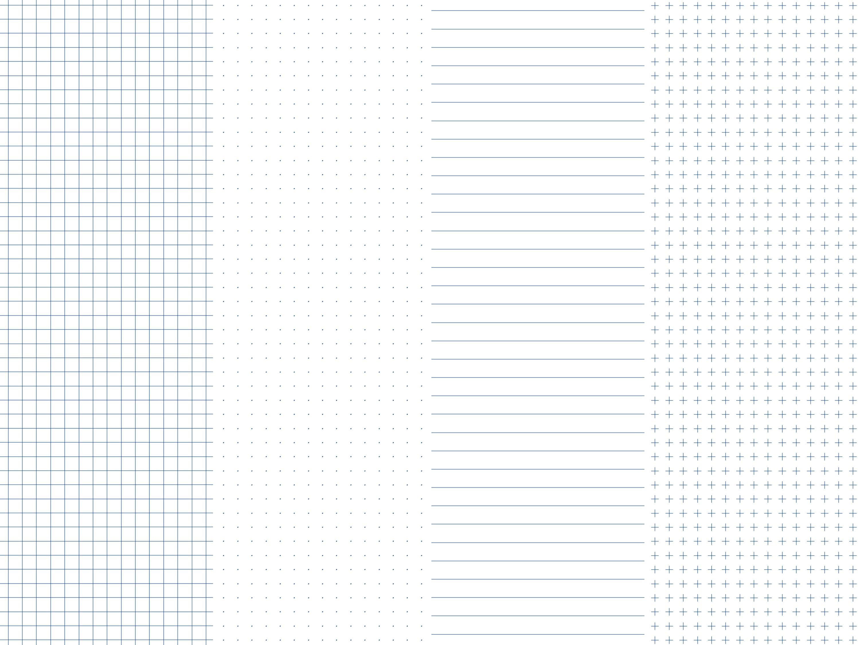 - Styles: Grid (5 x 5 mm Blue), Dots (5 x 5 mm Blue), Lined (6.5 mm Blue), Cross (5 x 5 mm Blue), Blank