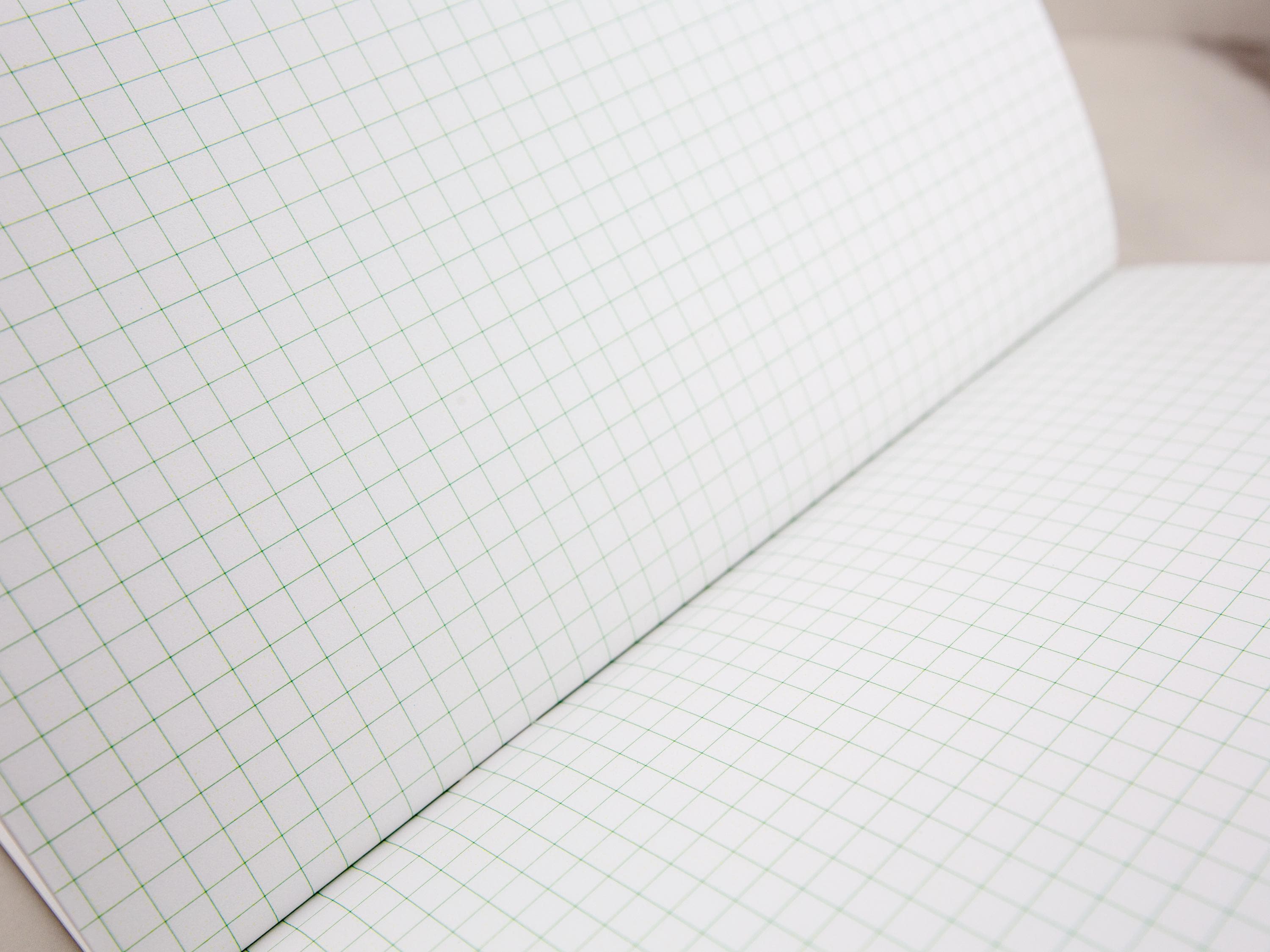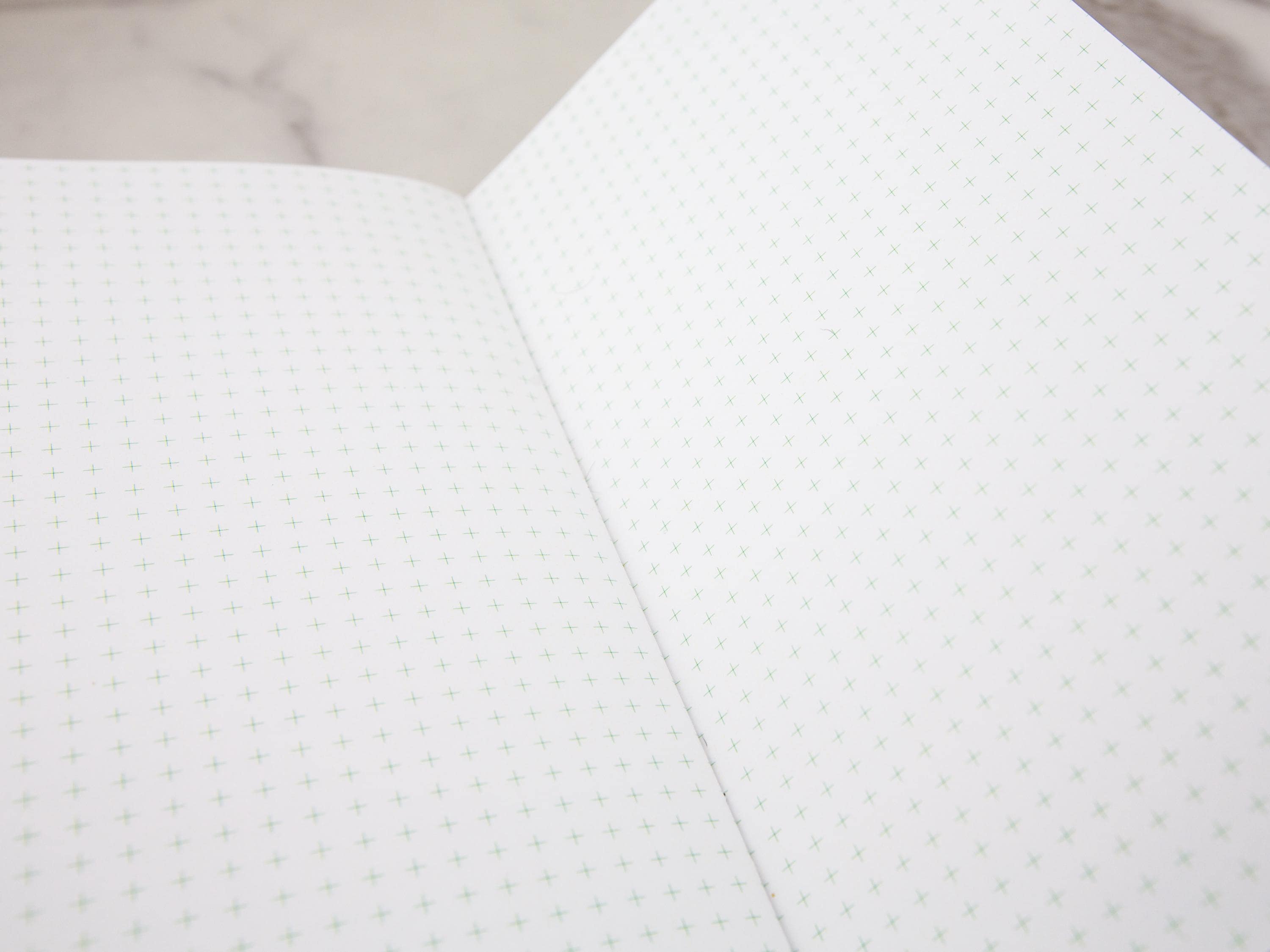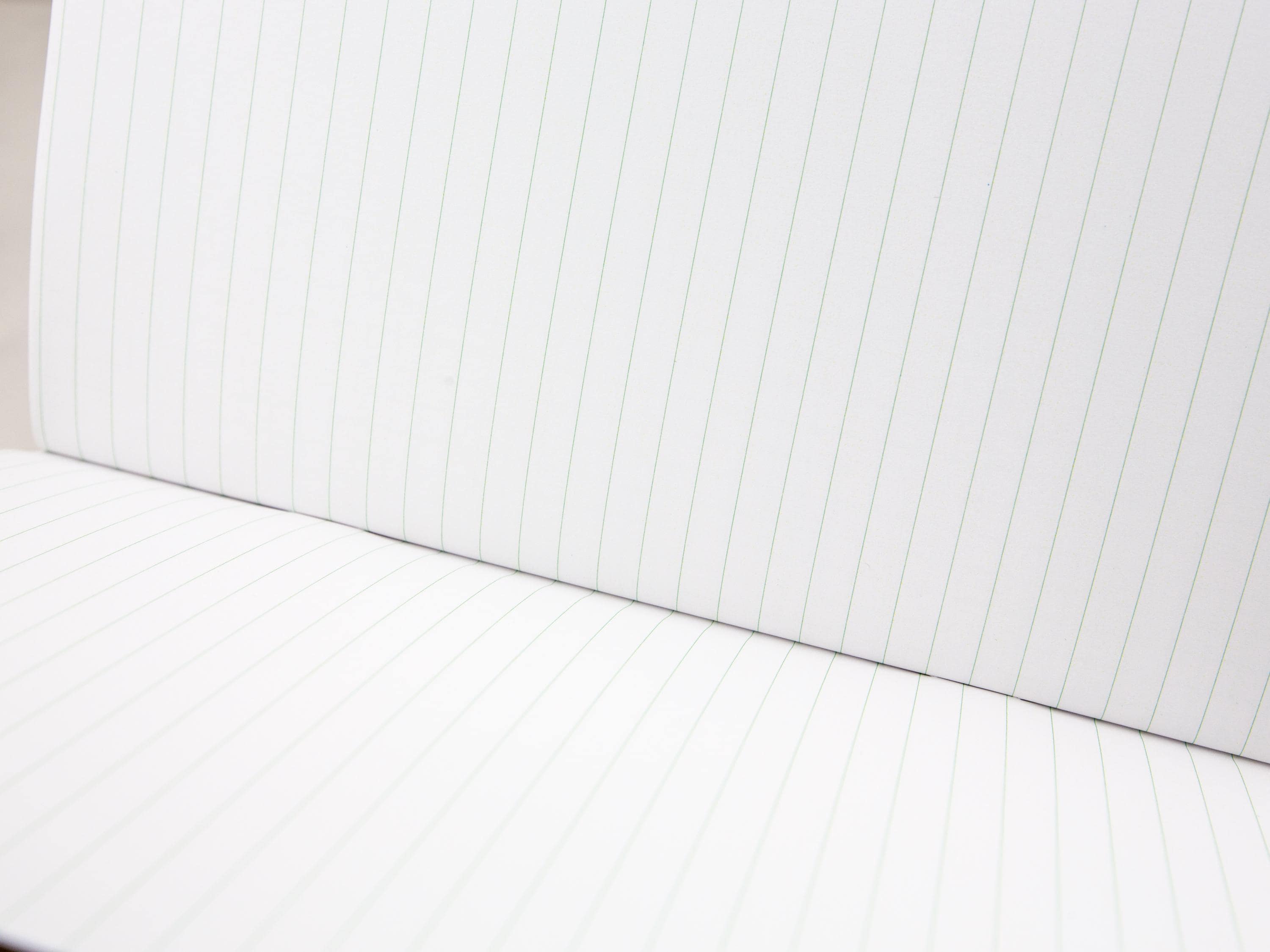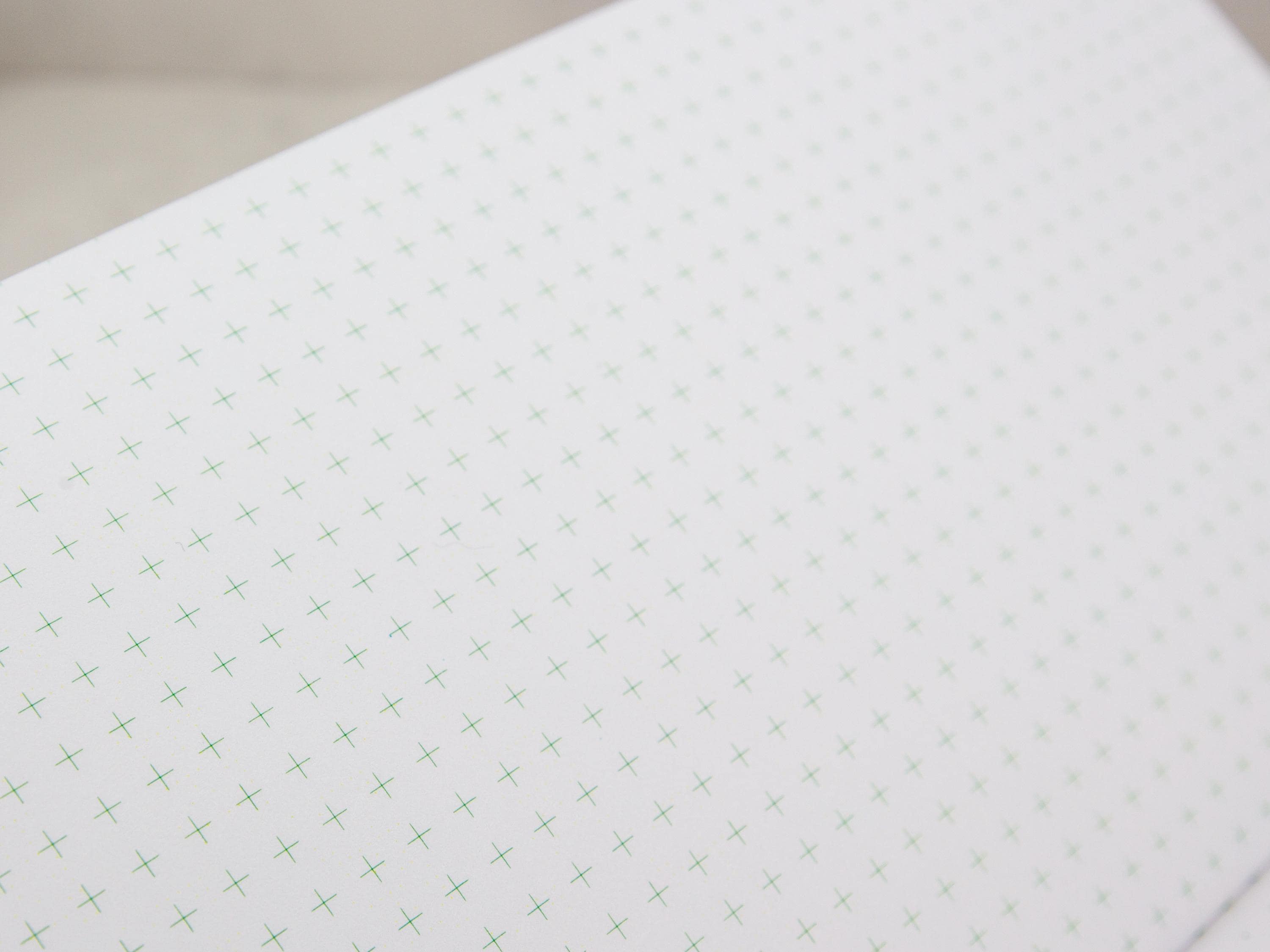 The green grid / dots / lined / cross notebook provides a simple, traditional cover with 40 pages of quality writing paper. The paper is bleed-resistant, feather-resistant, and fountain pen friendly. It fits perfectly in all sizes of traveler's Notebook inserts.